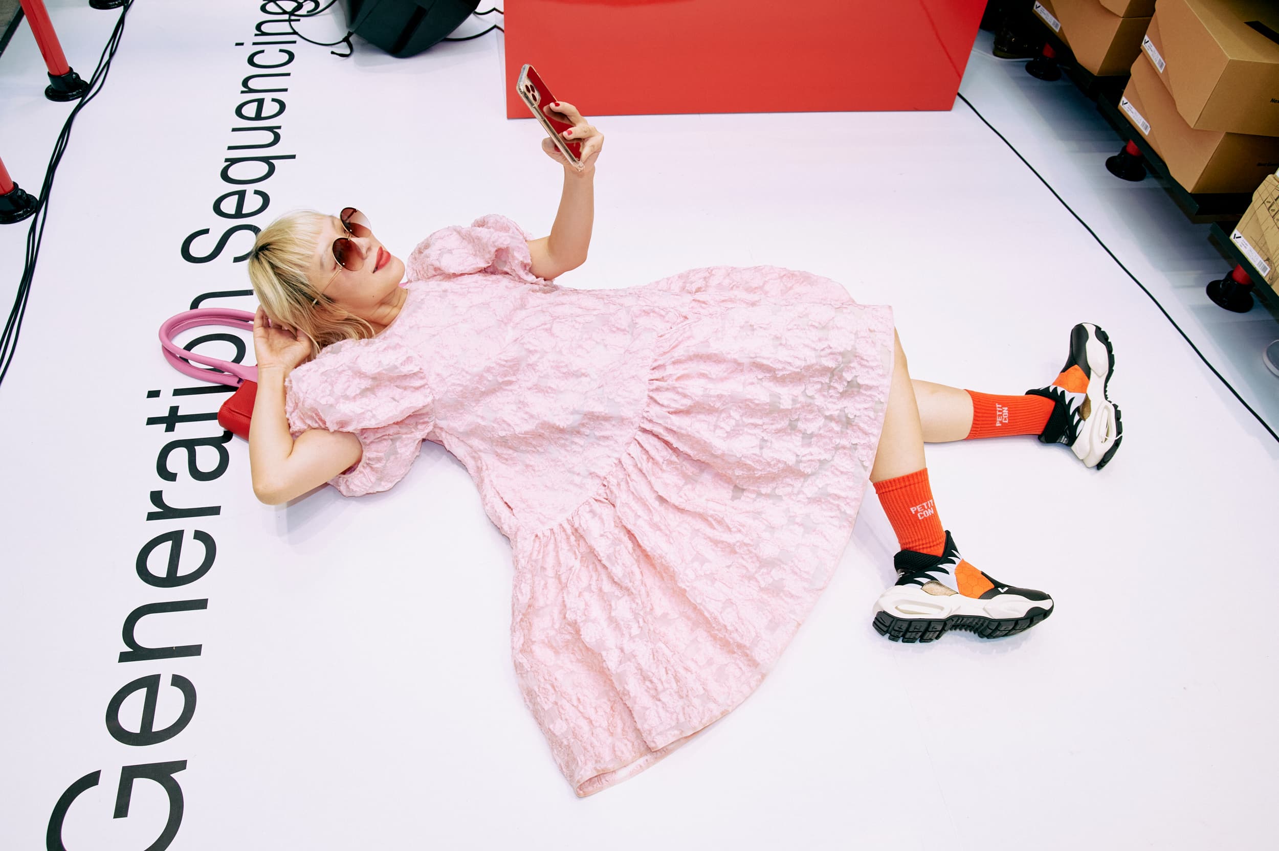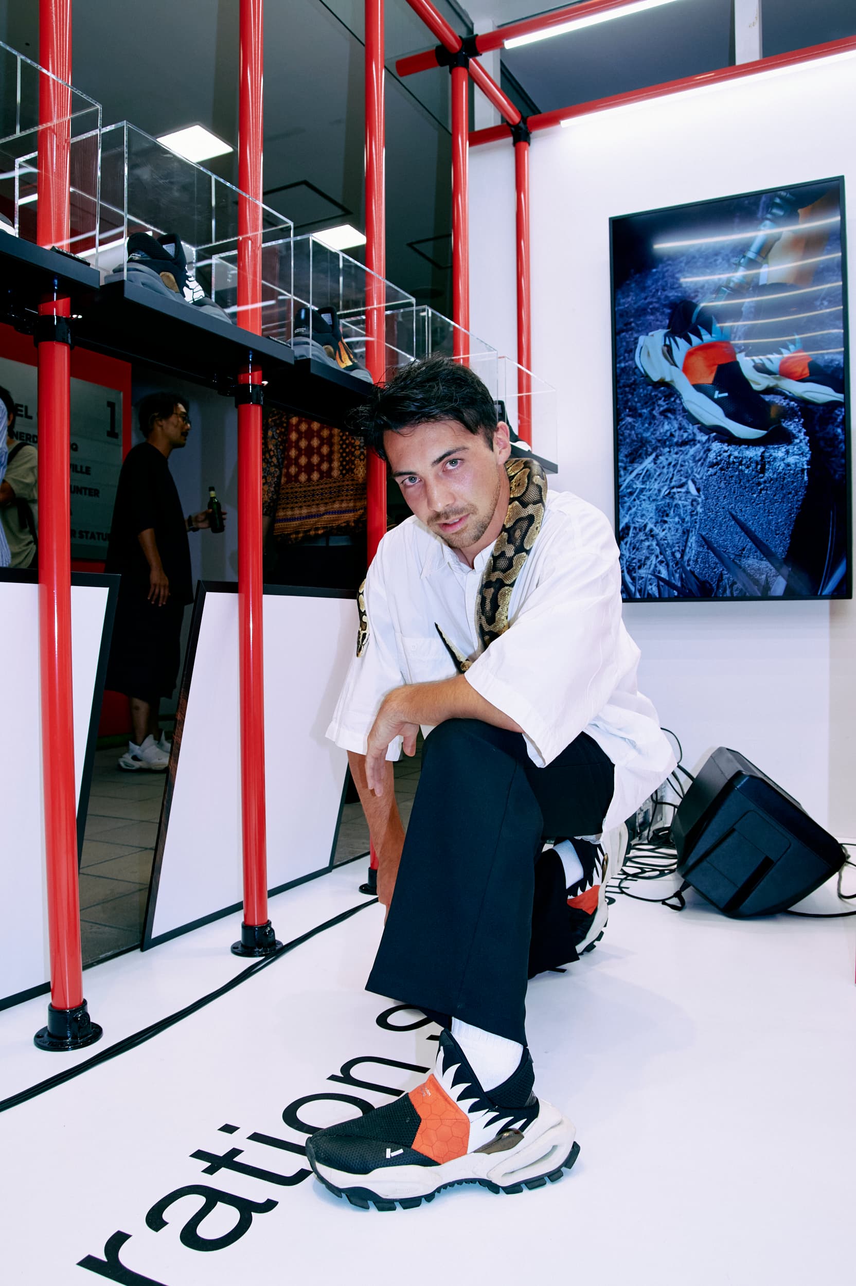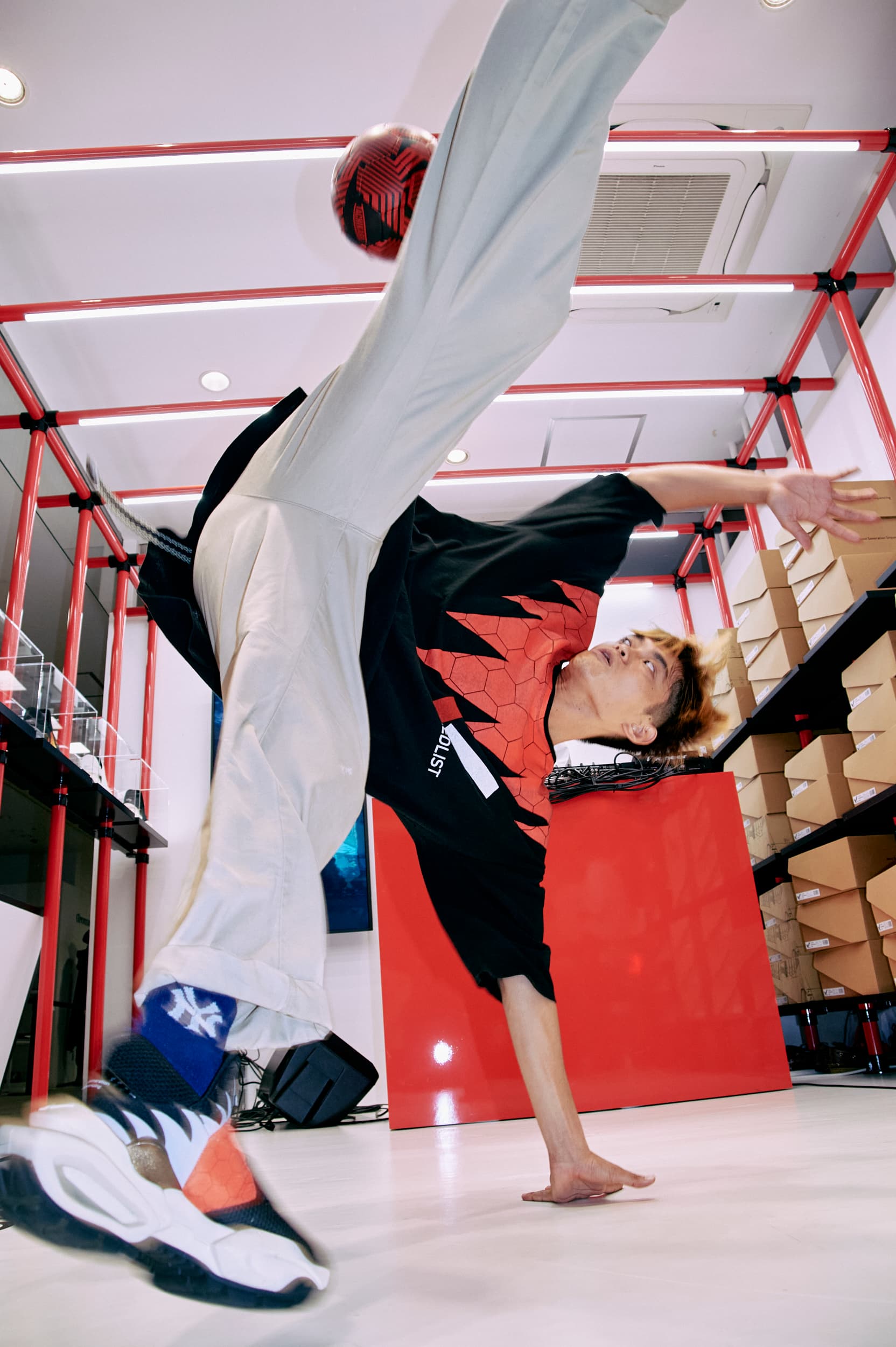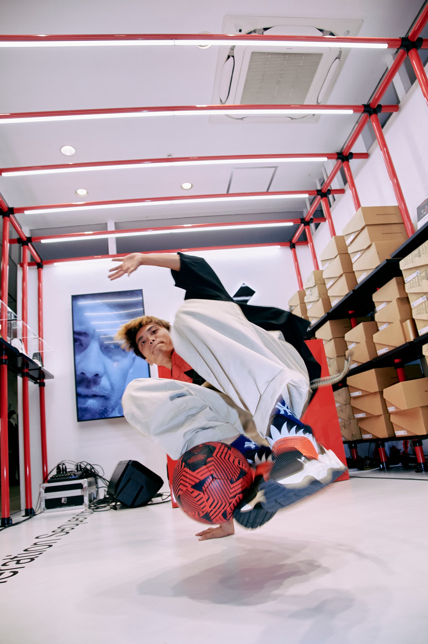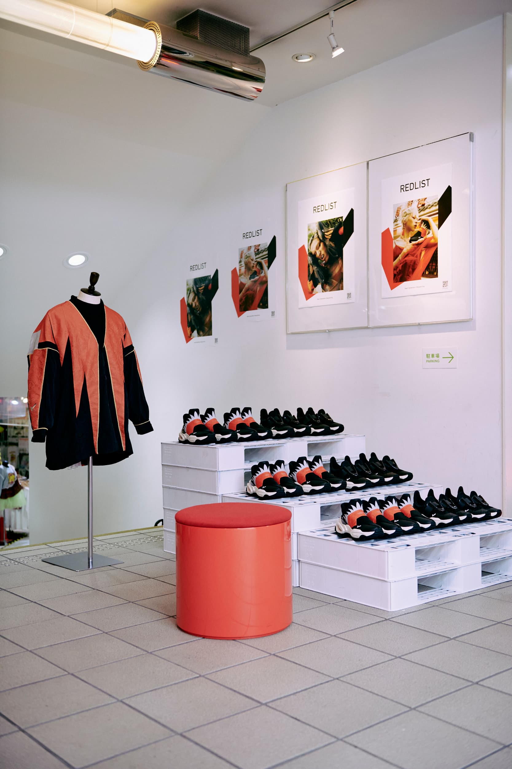 ブランドカラーでもある赤を象徴とした空間でスニーカーとの出会いを演出しました。