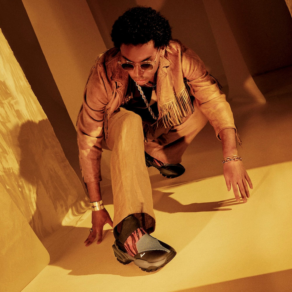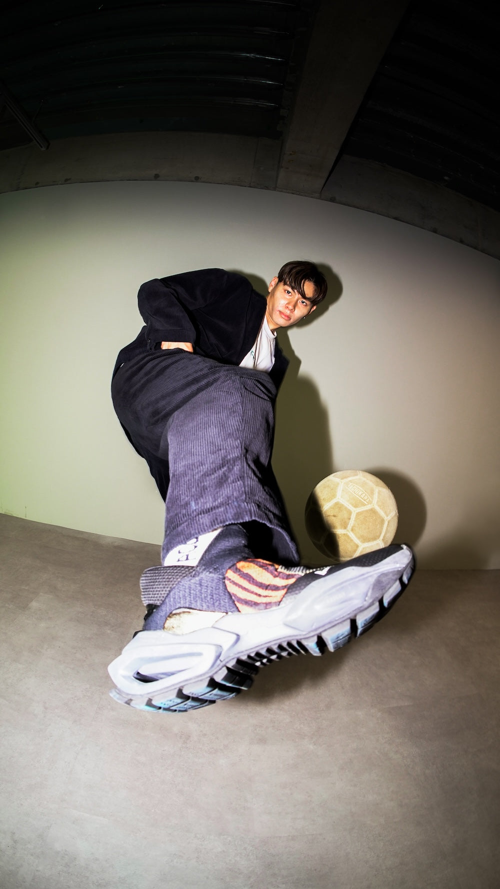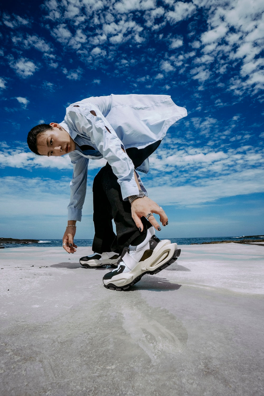 ブランド初のローカットモデル。海洋生態系の頂点に君臨するホオジロザメからインスパイアされたデザイン。ホオジロザメの流線型のフォルムを再現し、足元に躍動感を与えます。